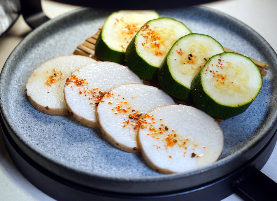 ▼櫛瓜、山藥,很適合放在烤網邊邊小火慢烤,櫛瓜清爽脆甜、山藥綿密甘甜,很適合來轉換一下味蕾。
