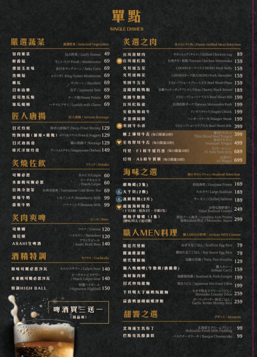 這次來燒肉MEN果然名不虛傳,不僅沙拉吧營養豐富,肉品、海鮮新鮮美味,就連甜點也相當厲害,難怪平日就有滿滿人潮;另外二樓也有提供包廂空間,人多的話也沒問題,用餐前記得先訂位比較保險。