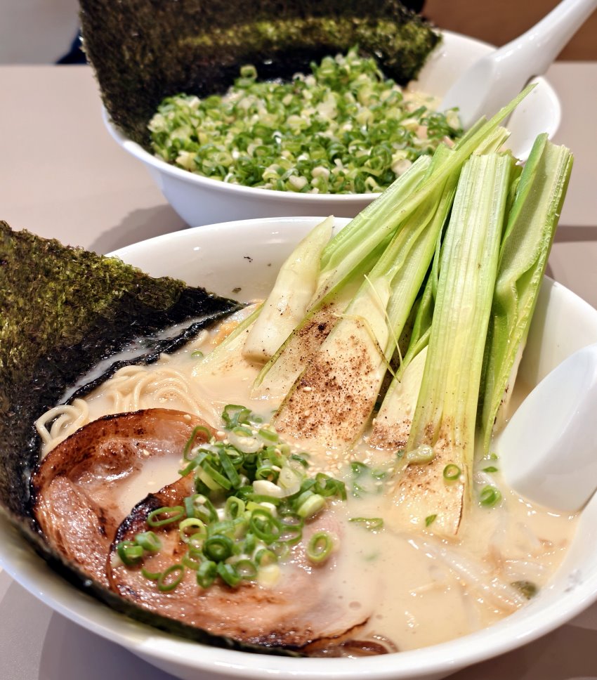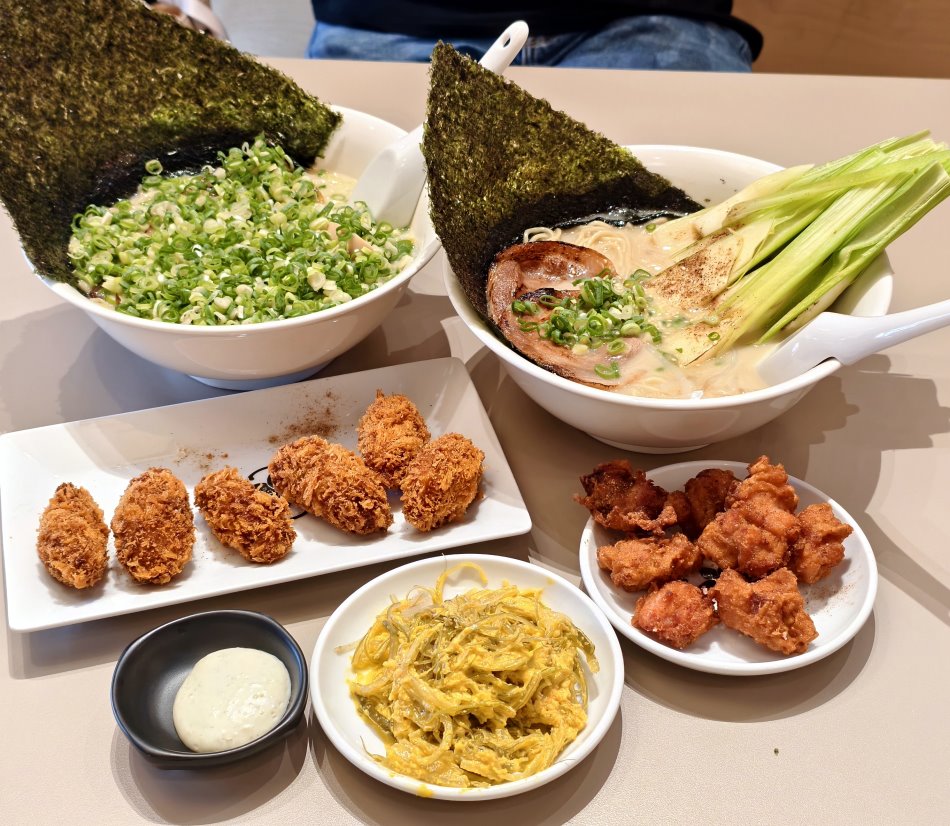 ▼我們點了筊白筍拉麵、塩豚蔥花拉麵、炸牡蠣、唐揚炸雞,黃金海帶絲是好友點的,清爽又解膩。