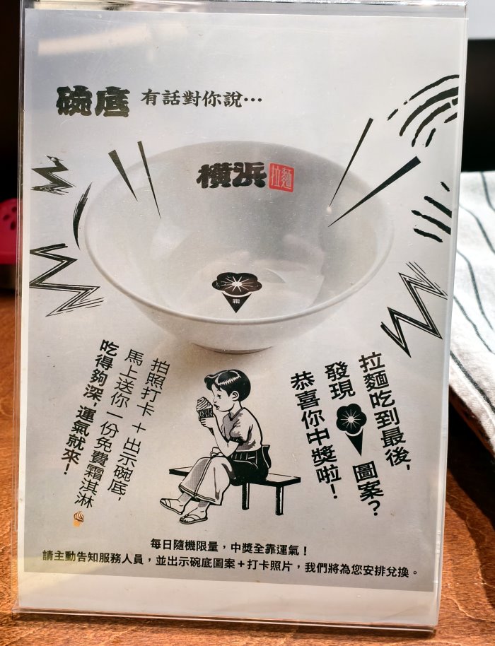 橫濱拉麵不僅用餐環境舒適,餐點選擇多元,份量十足還有飲料喝到飽真的很超值;過陣子帶小朋友再訪,碗底又中了一支霜淇淋,大家都吃得很開心,是個適合全家大小一起來訪的餐廳好選擇,有興趣的朋友別忘了安排一下。