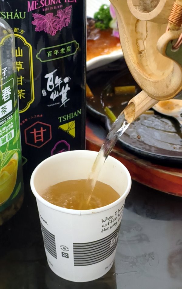▼每桌都會附上一壺熱茶,還是採用竹筒製成的茶壺盛裝,真的超有味道。