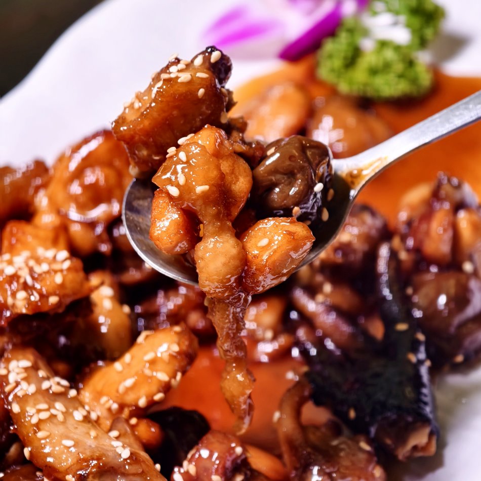 ▼紫蘇梅子雞,這道也是店內招牌菜色之一,採用嘉義梅山紫蘇梅搭配酥炸過的去骨雞肉更是香滑順口。